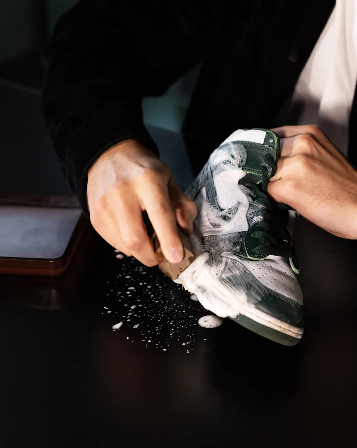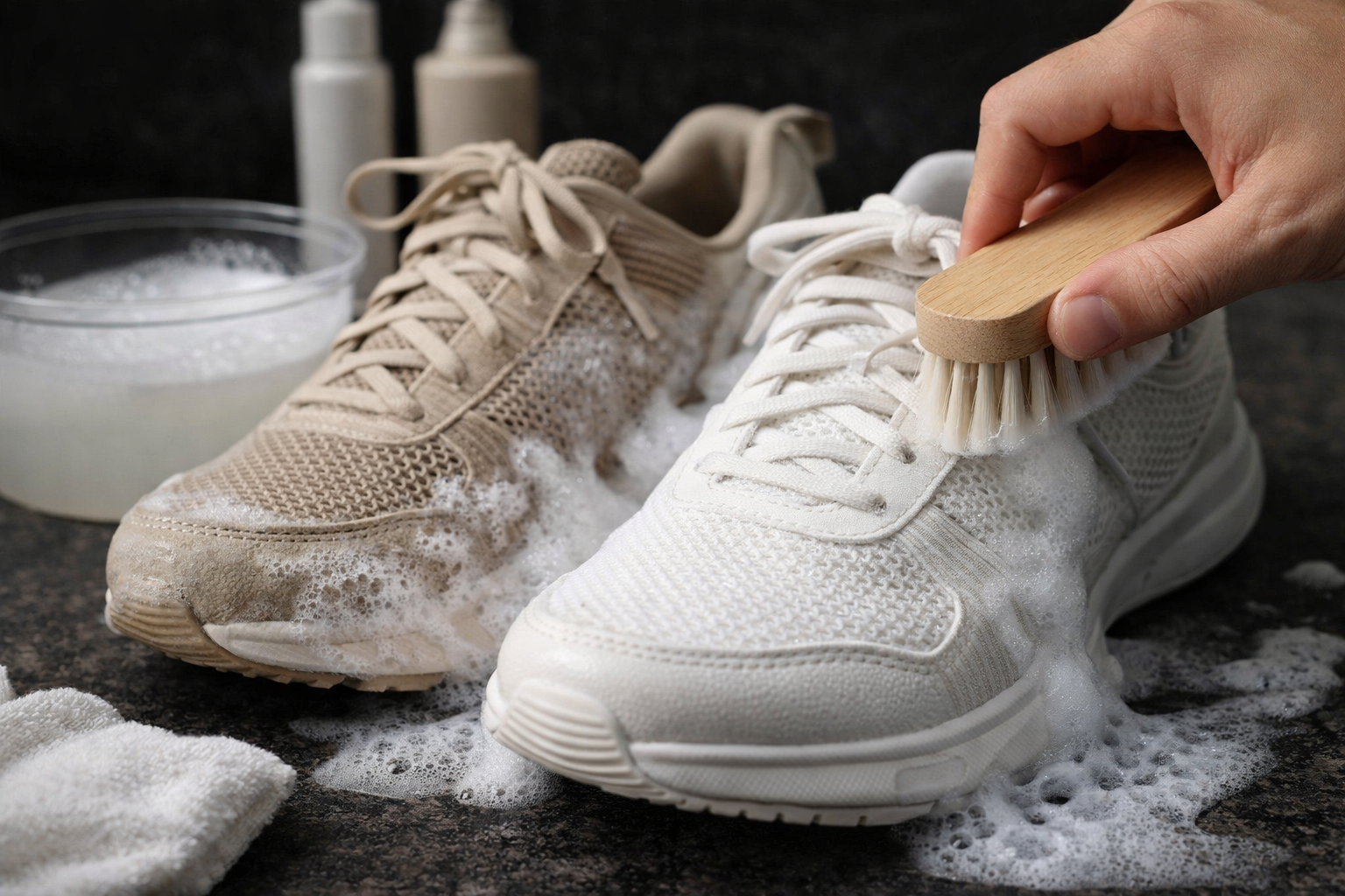 Utilisez des produits formulés pour les sneakers : Jason Markk, Crep Protect, Reshoevn8r. Ils sont conçus pour nettoyer sans attaquer les matériaux.